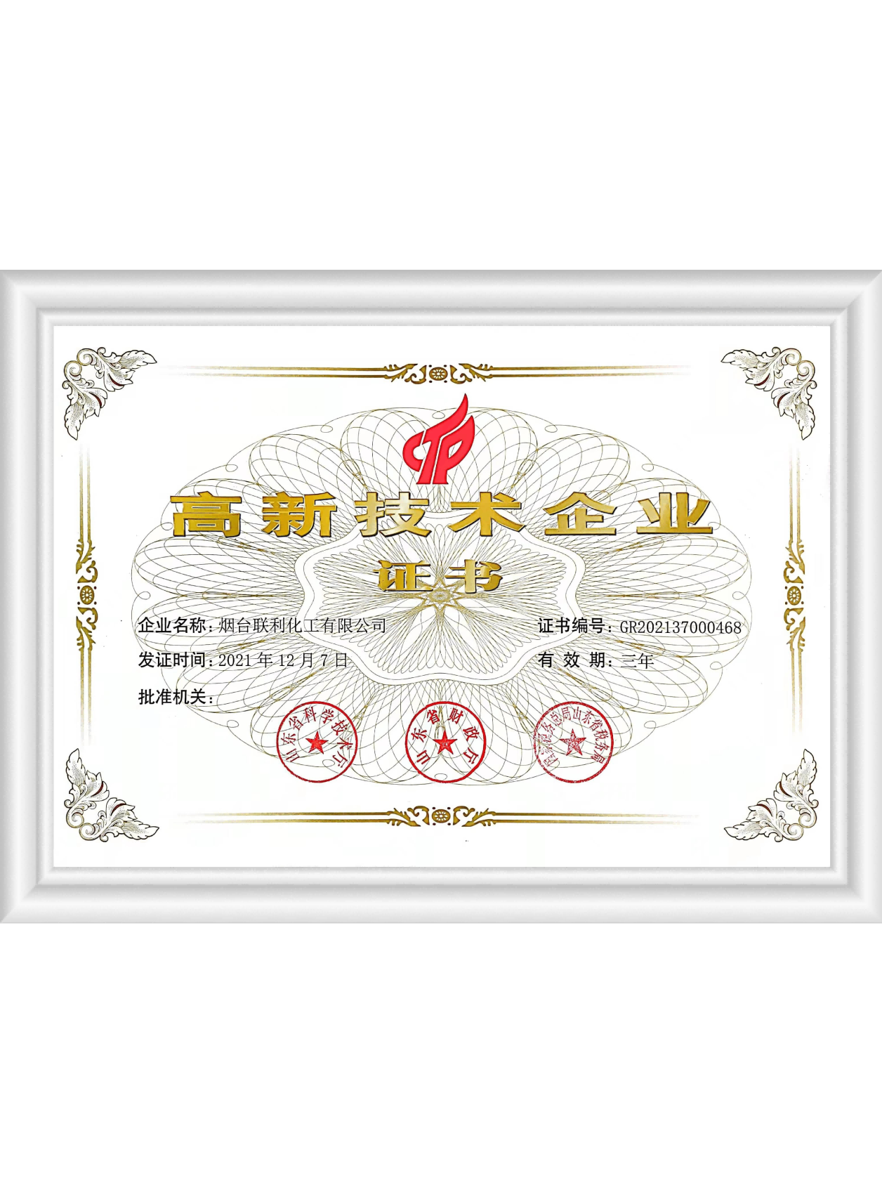 高新技術(shù)企業(yè)證書(shū)